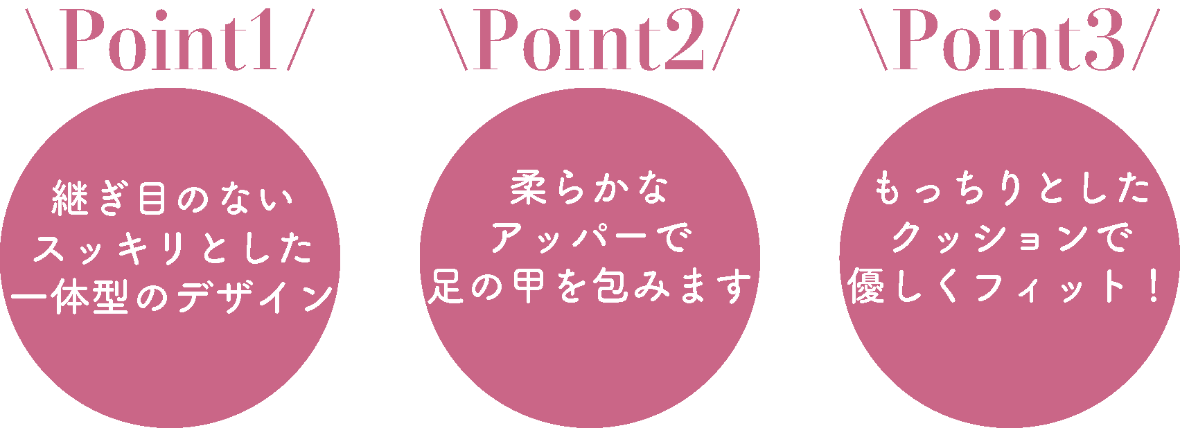 すっと足を入れるだけで、違いがわかる履き心地。継ぎ目のない一体成型だから、足あたりはなめらか。ごろつきにくく、素足でも快適です。ほどよい厚みのクッションが歩くたびにやさしく衝撃を吸収。主張しすぎないデザインで、どんな空間にも自然になじみます。毎日使うものだから、ストレスのない一足を。